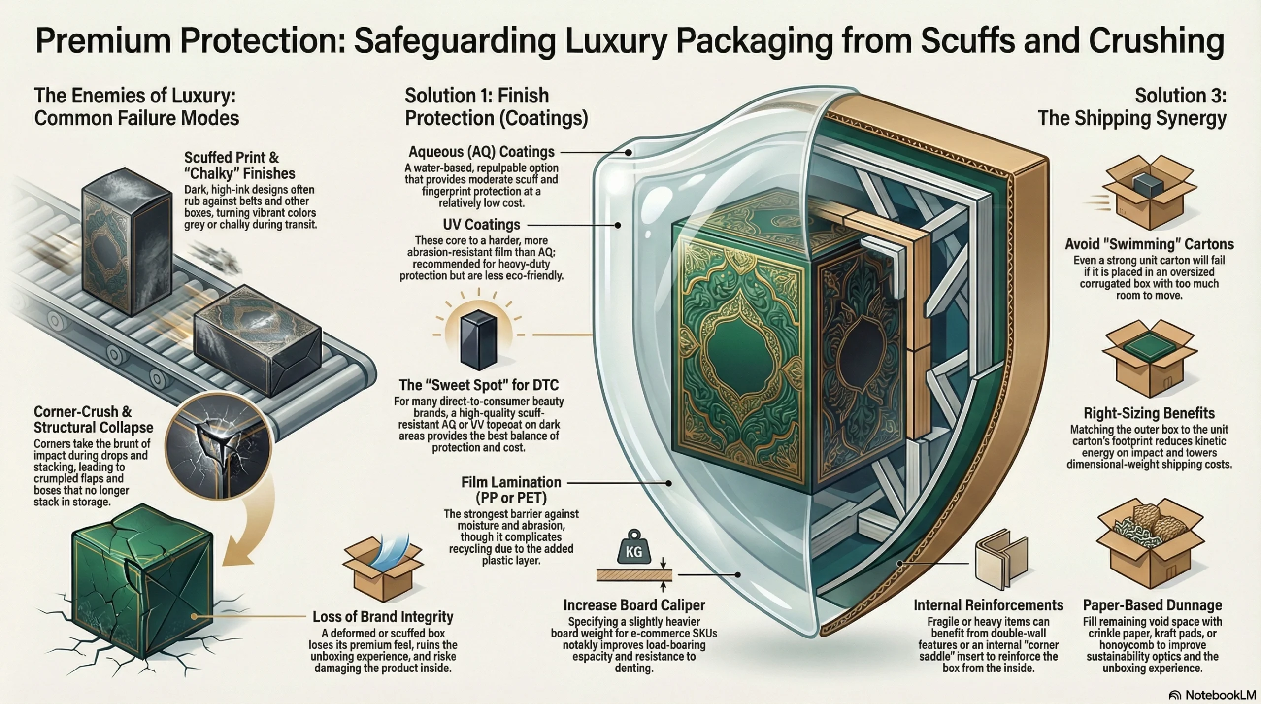 Design your packaging as a tested three-layer system: a structurally reinforced folding carton with scuff-resistant coating, an engineered insert that locks the product in place, and a right-sized corrugated outer with minimal void fill. Consider ISTA 6-Amazon testing protocols, which simulate real fulfillment drops, vibration, and compression. Use slightly heavier board, reinforce corners, and pair unit cartons with aqueous or UV coatings on dark designs to prevent them arriving scuffed or crushed.