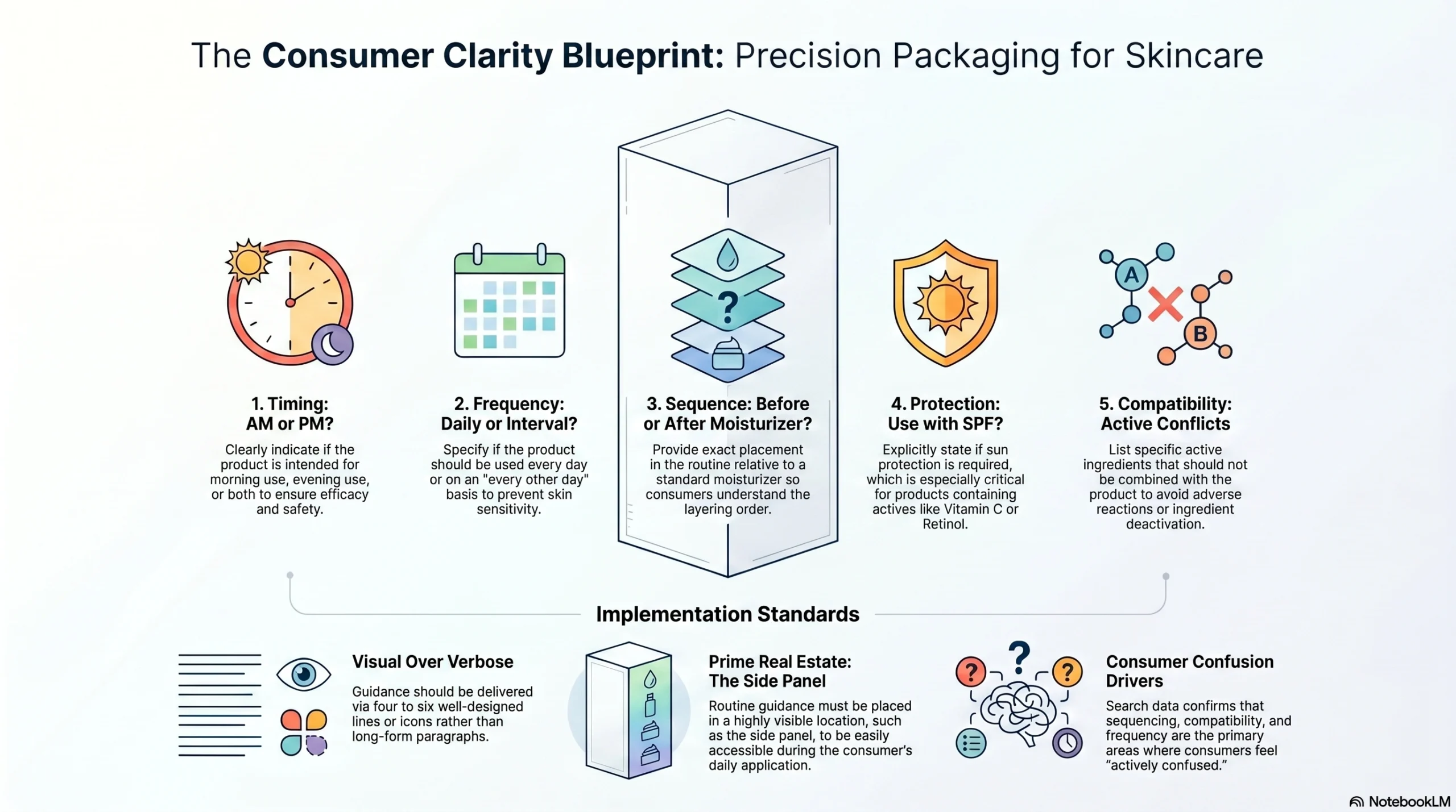 Search behavior tells us that consumers are actively confused about sequencing, compatibility, and frequency. Packaging should answer — clearly, concisely, and in a visible location:
