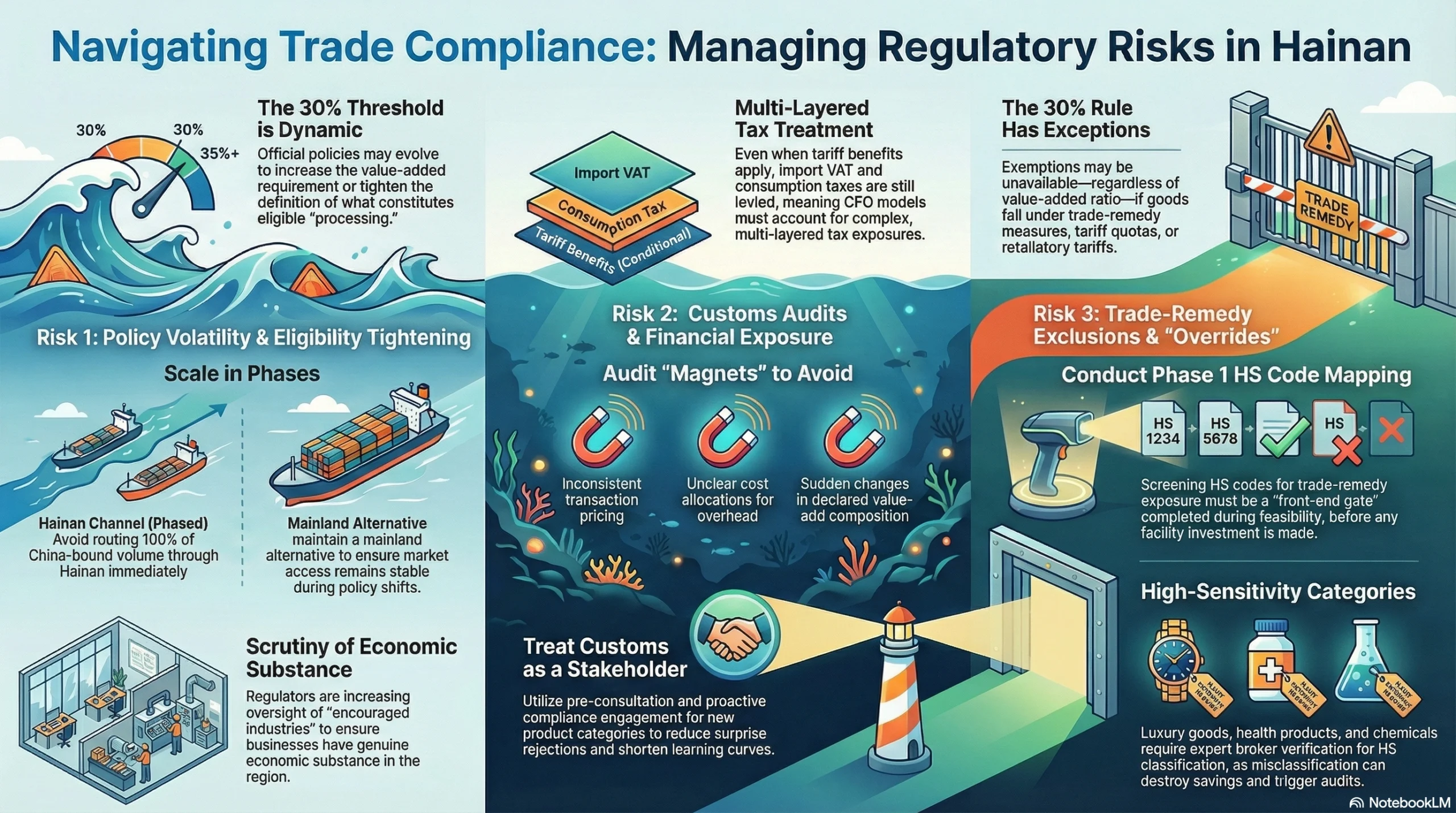 The strategic lesson: the 30% rule is not only about what you do in Hainan, but how you structure sourcing (raw vs semi-finished) and where you perform monetizable value-add services.